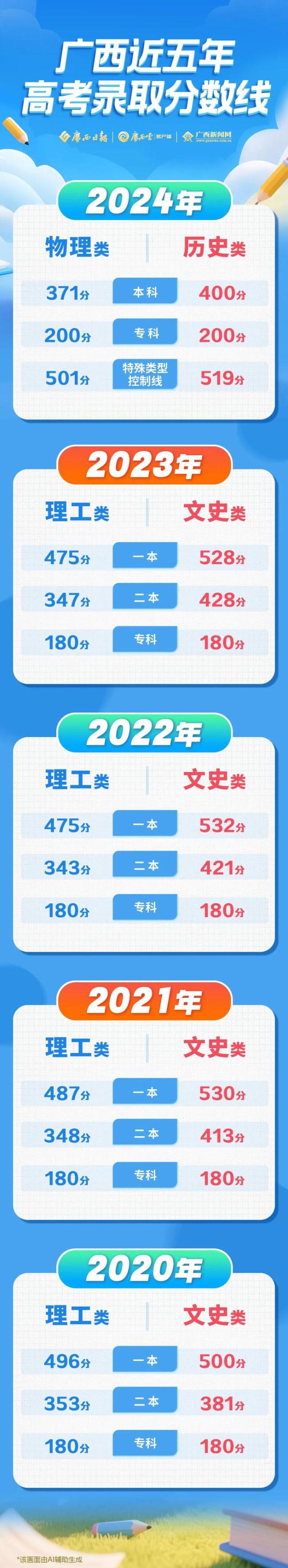 广西高考分数线公布