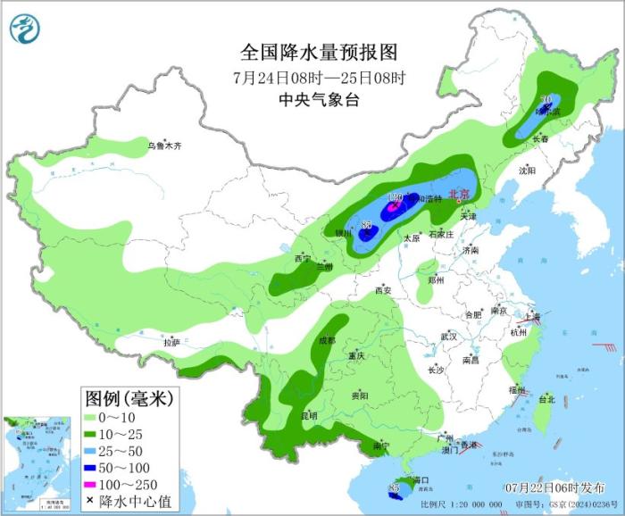 23日至25日,西北地区东部、内蒙古中西部、华北、东北地区等地的部分地区有大到暴雨,局地大暴雨。