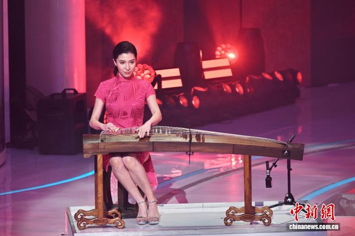 图为2025香港小姐竞选亚军获得者施宇琪在才艺对决环节弹奏古筝。中新网记者 李志华 摄