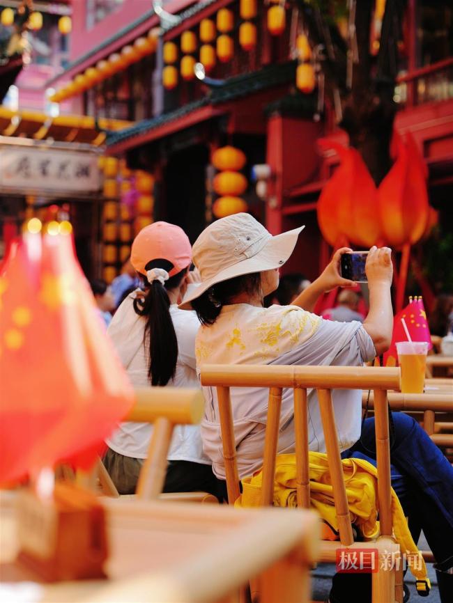 长沙知名餐饮企业火宫殿也从几天前就开始邀请市民一起观看直播,并准备了屏幕与座椅。有观众早上7点就来到火宫殿等待直播开始。现场氛围很好,大家摇旗叫好,还一起起身歌唱。