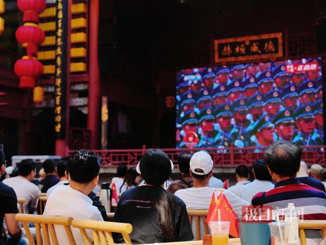 长沙多个商家用大屏幕直播阅兵 市民热情参与共庆胜利