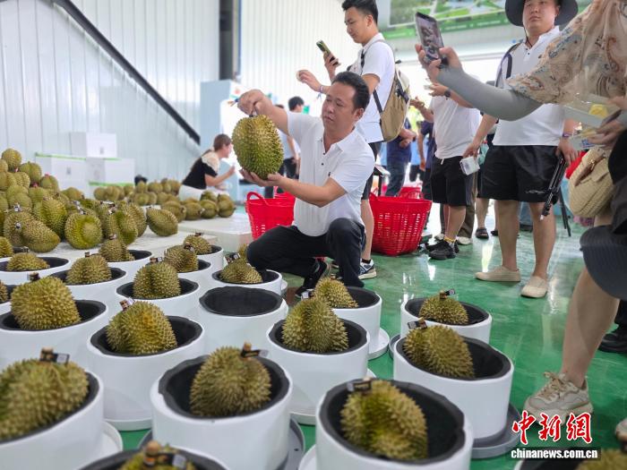 海南榴莲市场拓展是今年的一大亮点。国产榴莲过去主要销售到北上广深等一线城市,今年7月在三亚举办的2025海南榴莲产销对接活动,数百家果品销售商到场,果品销售企业与海南榴莲种植企业现场签约,助力海南榴莲鲜果及其衍生产品触达更多市场。“国产榴莲的版图正在扩大,今年国产榴莲已经卖到了黑龙江、新疆等地。”杨福旺说。