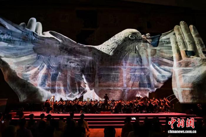 现代光影科技与经典交响乐章的创新融合,引导观众在艺术体验中,铭记历史、缅怀先烈、珍爱和平、开创未来。中新网记者 陈静摄