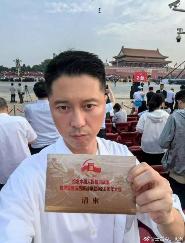 军人后代演员王雷晒观礼照片 致敬先辈与和平