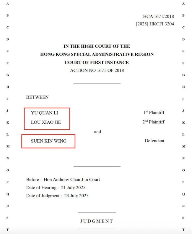 判决书显示,本案的原告为于全利及楼小洁,二人为夫妻关系(下称于氏夫妇),也就是孙健荣的客户。