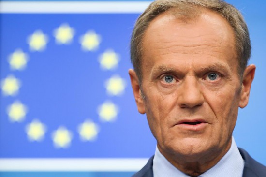 2019年10月17日,在比利时首都布鲁塞尔,时任欧洲理事会主席图斯克出席新闻发布会。新华社记者郑焕松摄