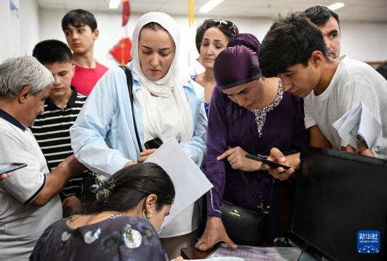 9月12日,在塔吉克斯坦首都杜尚别的国家图书馆中国厅,学生家长在为孩子报名。新华社记者 李任滋 摄
