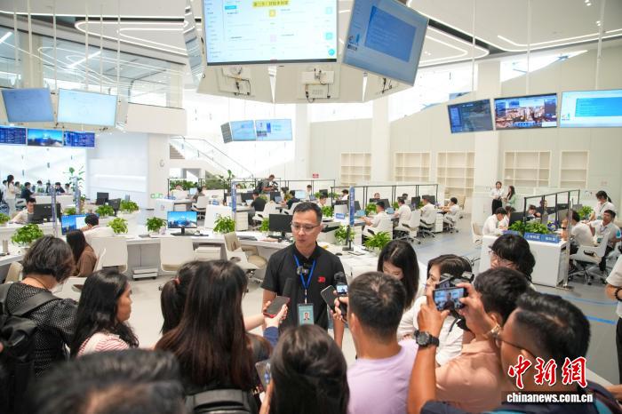 9月15日,第22届中国—东盟博览会东盟国家主流媒体采访团在中国—东盟人工智能创新合作中心采访。陈冠言 摄