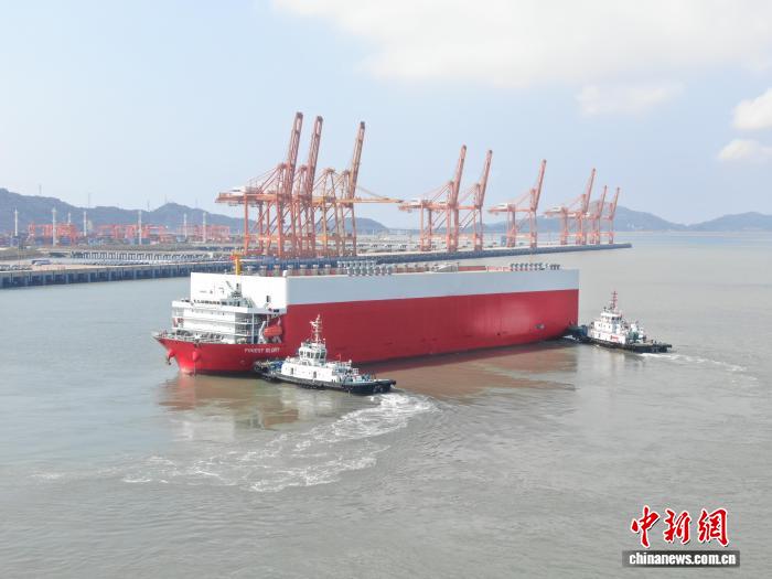 图为“森林荣耀”在温州港状元岙港区。(无人机照片)浙江海事局供图