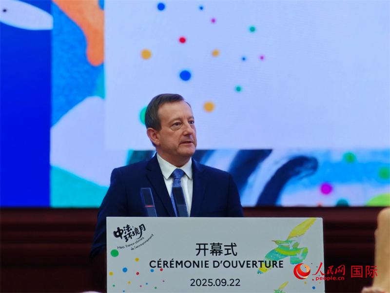 9月22日,法国驻华大使白玉堂在第十二届中法环境月开幕式上发表致辞。人民网 李慧妍摄