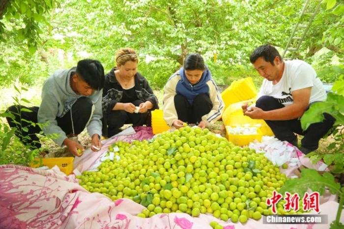 库车市融媒体中心供图当地民众展示小白杏。库车市融媒体中心供图