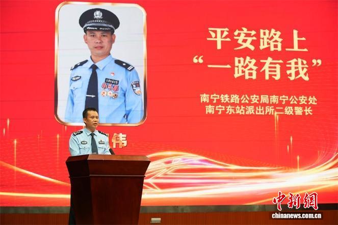 “警号1615,是我对每一位旅客的承诺——平安路上,一路有我。”22日下午,南宁铁路公安局大礼堂内,当南宁东站派出所民警高明伟说出这句话语时,现场响起经久不息的掌声。作为第七届“最美铁路人”先进事迹巡回报告会铁路公安系统专场的代表,他以亲身经历讲述了铁轨旁长达21年的坚守与担当。