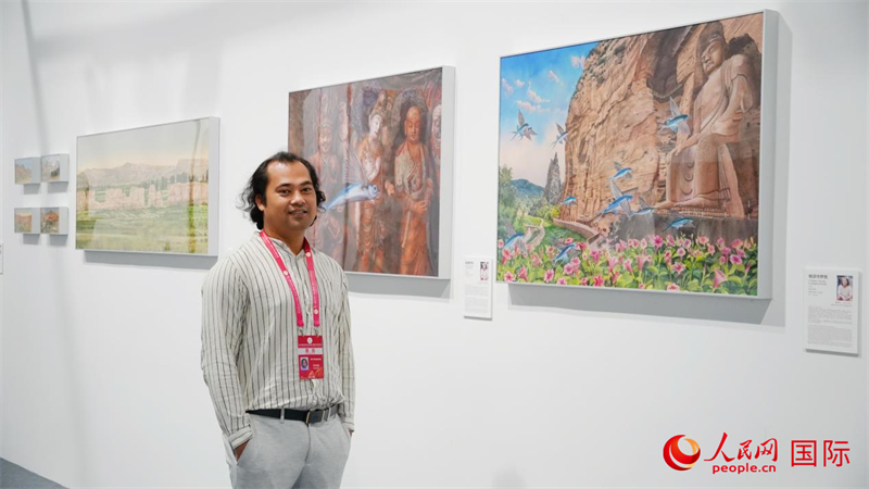 “非常开心能全程参与此次从甘肃采风、杭州共创到敦煌展出的全过程!”孟加拉国艺术家蒙蒙烁在敦煌文博会现场难掩激动之情,他分享道:“这段经历注定铭刻于我生命之中。我们虽来自不同国度、使用不同语言,却对美有着共同的追求,对和平怀有一样的渴望,对未来秉持相通的信念。此次交流不仅为我们迸发出丰富的创作灵感,更让我们结下了深厚而珍贵的友谊。”