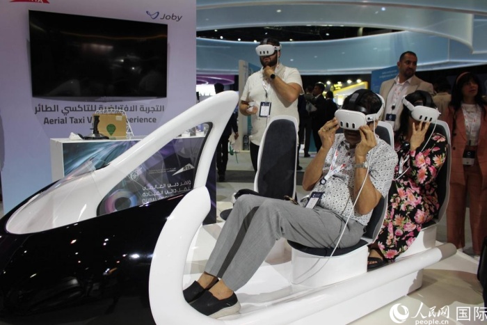 会场展示的飞行汽车。人民网 杰勒德·阿勒费尔摄