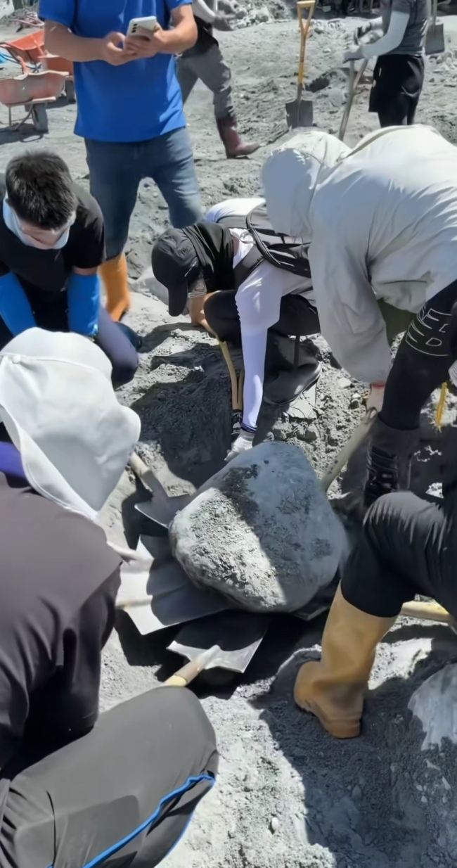 现场:花莲救灾现场6人铲1块石头!