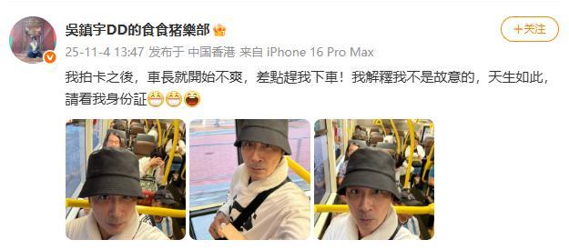 63岁吴镇宇刷老年卡坐公交司机质疑 外貌年轻惹争议!11月4日,吴镇宇在社交平台上分享了一段经历。他在使用公交老年卡时,因外貌显年轻被车长质疑“冒用他人证件”,甚至险些被赶下车。他当场掏出身份证自证年龄为63岁,并调侃:“看清楚,天生如此!”