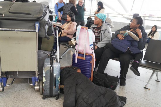 11月5日,在美国纽约肯尼迪国际机场,乘客等候值机。新华社记者张凤国摄