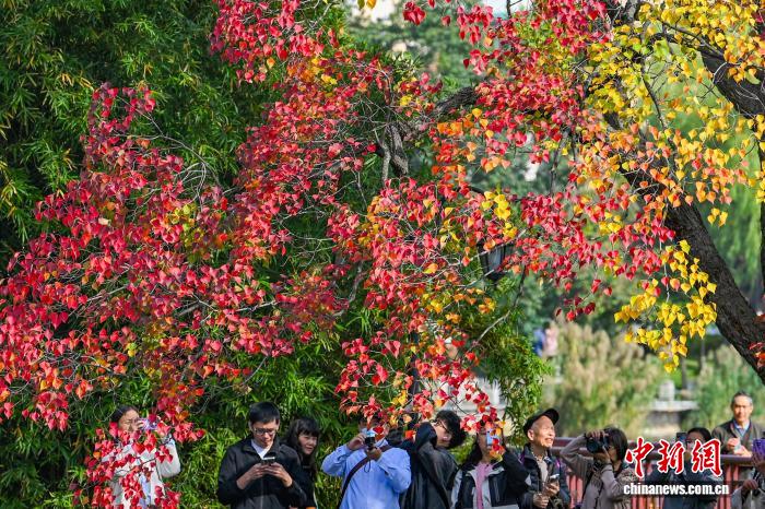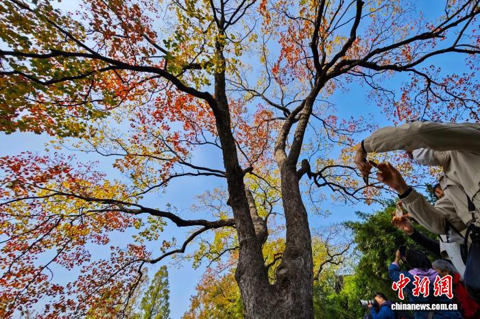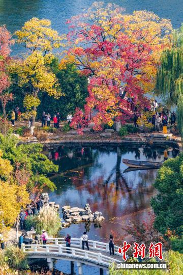 11月10日,南京莫愁湖公园内一株株银杏、水杉、乌桕等色彩斑斓,尽显秋日诗意。中新社记者 泱波 摄