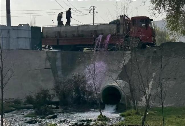 11月8日,有网友反映甘肃省临夏州临夏市折桥镇大夏河边有车辆疑似在排污。视频显示,一辆四川牌照的大卡车停在路边,打开管口排水,现场泔水味特别腥臭。事发地点位于九眼泉农庄正对面,距离下游的刘家峡水库直线距离仅20公里。
