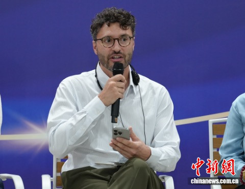 图为克莱恩斯欧洲环保协会全球公共事务总监皮埃尔·卡内在圆桌会议中发言。中新网记者 林勐男 摄