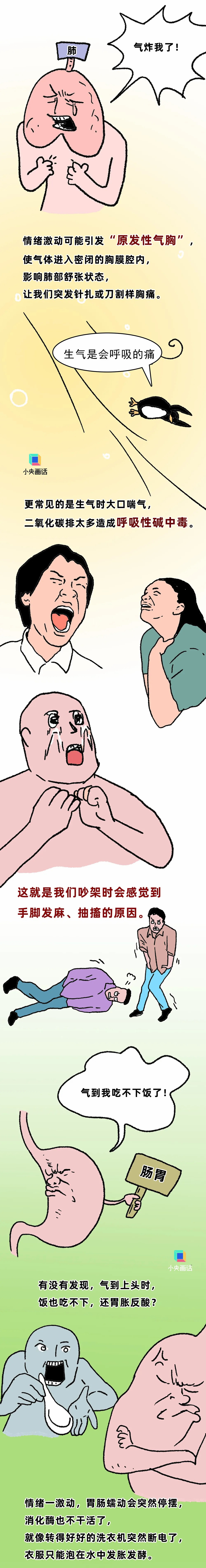 胃痛、手脚发麻、原发性气胸……生气有多伤身?一图了解