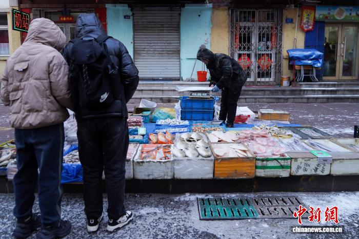 黑龙江哈尔滨变“天然大冰箱”冻货摆上街头售卖
