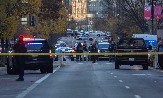 11月26日,在美国首都华盛顿,警方封锁案发现场附近街道。新华社记者胡友松摄