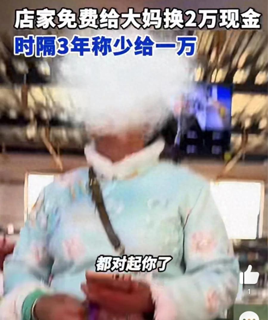 大妈换2万现金3年后称少给一万!12月1日,河南周口。店主郭先生称大妈2022年7月30号用微信分批给自己转了2万元,让给她换2万元现金,时隔3年多过来说当时少给她一万元,称当时大意了。郭先生说,对方经常来换钱,自己也不收手续费,3年多前的事情现在已经说不清了,后续报警也是建议对方去起诉自己。