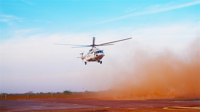 中国第六批赴阿卜耶伊维和直升机分队完成野外条件下换件试飞。黄浩摄