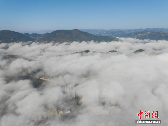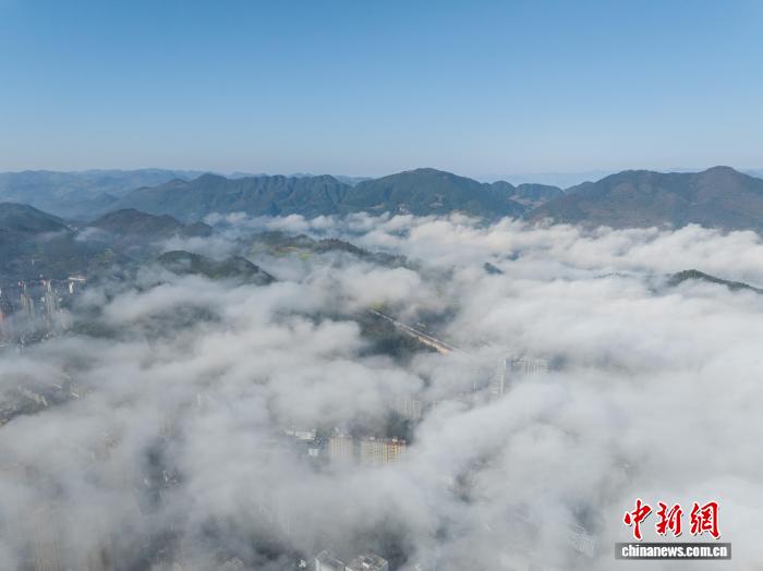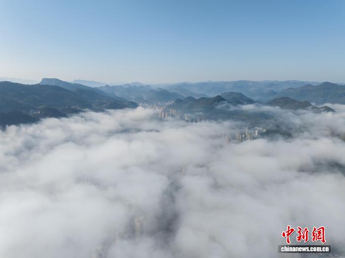 图为航拍务川平流云景观。(无人机照片)唐哲 摄