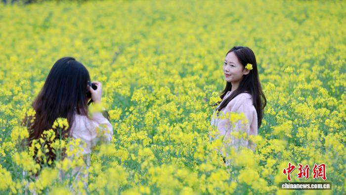 图为游客在赏花拍照。龚普康 摄