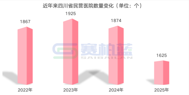 民营医院关停趋势在区域市场已有直观体现。近日,四川省统计局发布的2025年国民经济和社会发展统计公报显示,截至2025年末,全省医疗卫生机构共74331个,其中民营医院1625个,较2024年的1874个减少249个。