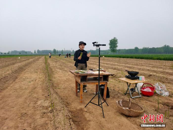 “家人们闻闻!今早刚采的头茬芦笋,撒点盐就鲜掉眉毛,现采现发下午就走!”清晨,渭南市大荔县苏村镇槐园村的芦笋地还浸在微凉的晨雾里,“00后”姑娘马绒绒就在田埂边支起一口铸铁锅,她一手翻炒芦笋片,一手对着手机介绍,直播间里可以看到,她身后的田地里一片繁忙。