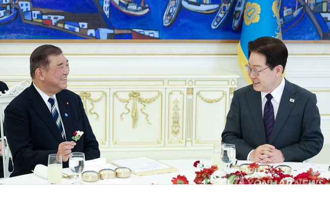 李在明在青瓦台与石破茂举行午餐会 共商韩日关系发展 韩国总统李在明4月8日在青瓦台与到访的日本前首相石破茂举行了午餐会。会上,李在明对石破茂在其任内为推进韩日关系发展所作的努力表示感谢。李在明还称赞石破茂视野广阔,关心国际问题,并希望他在当前复杂的国际形势下继续发挥作用 04-09