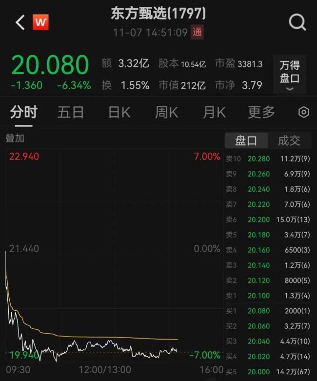 东方甄选股价跌超6% 创始人离职影响市场信心 11月7日,东方甄选股价低开并迅速下跌,截至发稿时跌幅超过6%,报价20.080港元。此前一天,俞敏洪在社交媒体上确认孙东旭已从东方甄选离职。俞敏洪表示,他和孙东旭是东方甄选的创始人。最近,孙东旭因个人原因提出不再继续工作 11-07