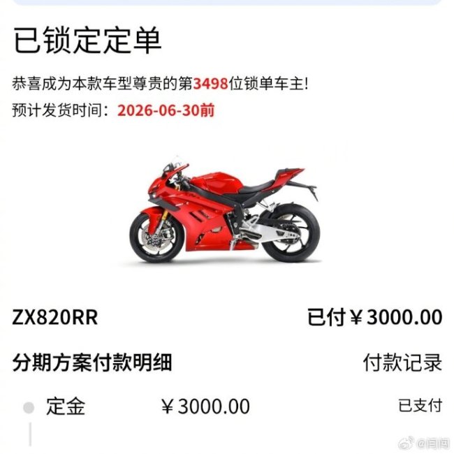 张雪机车夺冠车型要等三个月提车 订单激增推延交付 张雪机车在世界超级摩托车锦标赛(WSBK)葡萄牙站历史性斩获双冠后,其冠军同款车型820RR的提车周期成为消费者最关注的话题。目前全国订单普遍排至6月底,最长等待时间接近三个月 04-01