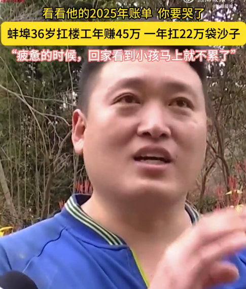 扛楼年入超45万男子发声:疲惫的时候回家看到孩子就不累了 “一次搬两袋,两袋大概140斤,我现在差不多160斤多一点。”近日,安徽蚌埠的36岁扛楼工杨晨用铁肩扛起家庭重担。2025年,杨晨年收入超45万,如果用70斤一袋的沙包衡量,相当于一年跑二楼扛了22万袋沙子。“三四十摄氏度高温的时候,真的很... 03-31