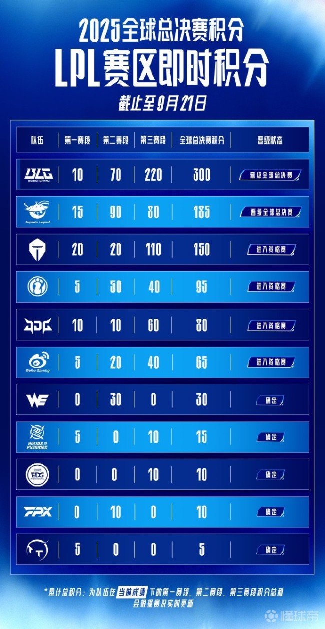 LPL全球总决赛冒泡赛对阵:TES与iG胜者组相遇,JDG对阵WBG 积分争夺战开启 昨天,BLG以3-2战胜TES,赢得了2025年LPL总冠军。AL也因积分优势成为LPL二号种子。接下来的冒泡赛对阵已经确定,TES和iG将在胜者组对决,而JDG和WBG则从败者组开始比赛 09-23