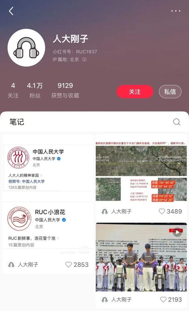 人大刚子起号3天吸粉4万 书记接地气互动获赞声 9月7日上午,认证为中国人民大学官方账号的“RUC小浪花”发文确认,“人大刚子”是该校党委书记张东刚的个人小红书账号。该账号在9月6日开始连续发布了两条与人大相关的帖文,截至9月8日上午10时,粉丝量已达4万 09-08