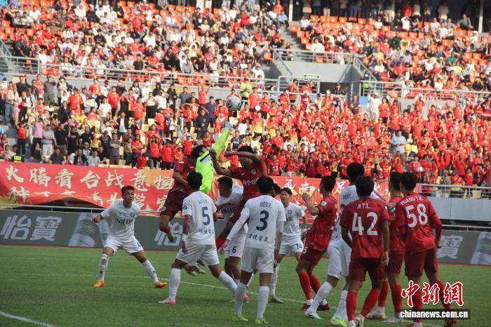 2025中乙联赛收官 广西恒宸捧杯 图为比赛瞬间。林兴平 摄 中新网南宁10月27日电 (黄令妍)10月26日,2025中国足球乙级联赛第30轮比赛在广西体育中心举行。主场作战的广西恒宸以1比2不敌无锡吴钩,但其已提前三轮锁定赛季冠军,以总积分73的战绩,在 10-27
