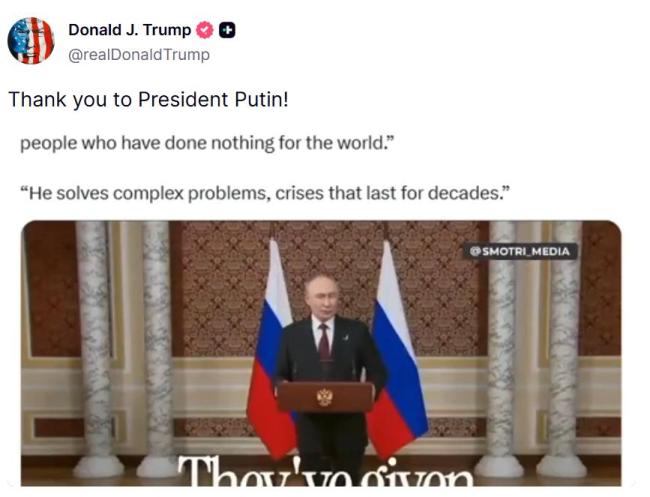 普京回应特朗普未获诺贝尔和平奖 肯定其和平努力 据俄媒报道,10月10日,普京在对塔吉克斯坦进行国事访问后举行的新闻发布会上,就特朗普与诺贝尔和平奖等话题发表了评论。普京表示,过去诺贝尔委员会曾将奖项授予一些对和平毫无贡献的人,这损害了该奖项的公信力,但他没有具体指出获奖者 10-13
