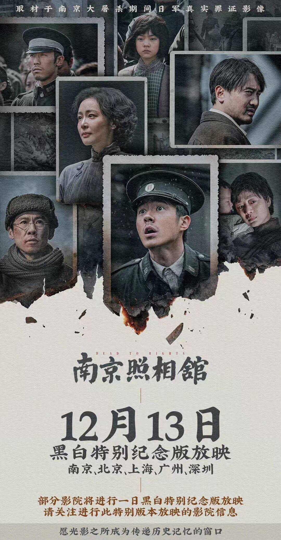 12月13日将特别放映《南京照相馆》 12月13日将特别放映《南京照相馆》。据@电影南京照相馆消息,12月13日,电影《南京照相馆》黑白特别纪念版将开启一日放映,在南京、北京、上海、广州、深圳5座城市的40家影院与影迷见面。据悉,将上映的南京16家影院覆盖南京所有区。在南京大屠... 12-11
