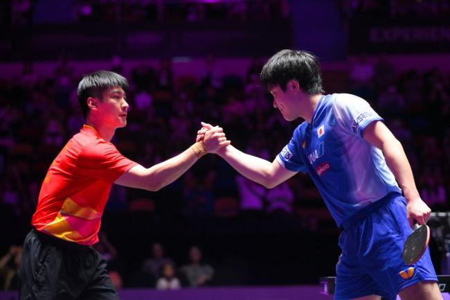 薛飞淘汰张本智和 晋级16强 在澳门举行的2025年世界乒乓球职业大联盟(WTT)澳门冠军赛男子单打首轮比赛中,中国选手薛飞以3比0战胜日本选手张本智和,成功晋级16强。赛后,两位选手握手致意。比赛过程中,薛飞展现了出色的状态,多次庆祝得分,并在发球和回球环节表现出色 09-11