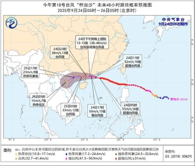 台风预警:“桦加沙”今天下午至晚上将在广东台山至湛江登陆 中国天气网讯 中央气象台9月24日06时继续发布台风橙色预警: 今年第18号台风“桦加沙”(超强台风级)的中心今天(24日)早晨5点钟位于广东省阳江市东偏南方向约255公里的南海北部海面上,就是北纬21.1度、东经114.3度, 09-24