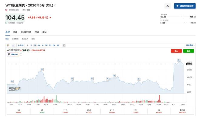 美伊局势升级!特朗普宣布封锁霍尔木兹海峡,原油暗盘暴涨 油价大涨8% 美国与伊朗周末和谈未取得成果,导致双方紧张局势升级。周一亚洲开盘时,国际油价大幅上涨,布伦特原油期货和WTI原油期货均上涨约8% 04-14