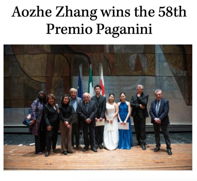 时隔19年中国音乐家再获帕格尼尼奖冠军,这次是17岁章奥哲 少年天才闪耀国际舞台 在意大利热那亚刚刚结束的第58届帕格尼尼国际小提琴比赛中,17岁的中国选手章奥哲成功夺冠。比赛前三名分别被中日韩三国选手包揽,金奖得主为章奥哲,银奖为日本选手吉本梨乃,铜奖为韩国选手KIM Hyun Seo 10-27