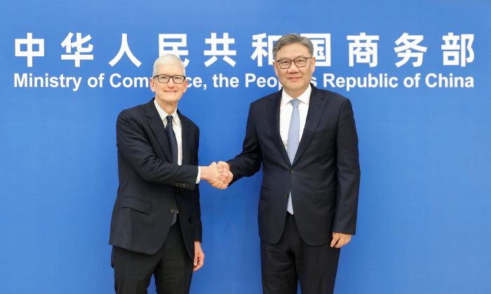 商务部部长王文涛会见苹果公司首席执行官库克 王文涛部长会见苹果公司首席执行官库克 (图源:商务部网站) 10月16日,商务部部长王文涛会见美国苹果公司首席执行官库克。双方就中美经贸关系、苹果公司在华业务发展等进行了交流。 10-17