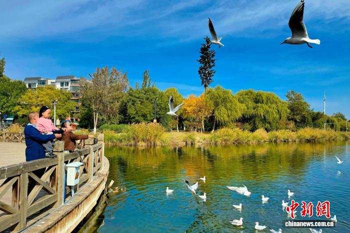 红嘴鸥翩跹飞舞 “塞上江南”秋日画卷醉游人 中新网银川10月15日电 (记者 李佩珊)深秋时节,宁夏银川湖泊湿地波光潋滟,成千上万只红嘴鸥时而掠过水面,时而盘旋空中,与岸边驻足观赏的游客构成一幅和谐动人的画面。不远处的滩涂上,几只素有“鸟中大熊猫”之称 10-15