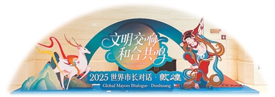 加强人文交流 传承文明瑰宝 2025“世界市长对话·敦煌”会场布景。 本报记者宋朝军摄 中外嘉宾参加“世界市长对话·敦煌”开幕式。 新华社记者范培珅摄 外国嘉宾参观了解莫高窟风沙环境综合治理项目。 新华社记者范培珅 10-17