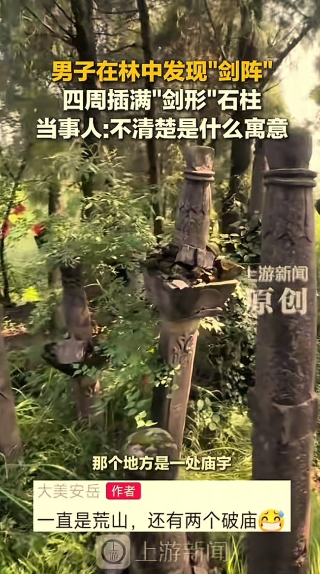 四川一男子在林中发现“剑阵”! 四川一男子在林中发现“剑阵”。“万万没想到!”四川资阳,男子去山上游玩,本以为是一片荒山,不料,他竟然直接愣在了原地,不是因为发现了宝贝,而是被眼前成片的“石头剑阵”吸引住了,男子傻眼了,看了半天也不愿意离开。以前看过的武侠剧和小说,男主受... 09-18
